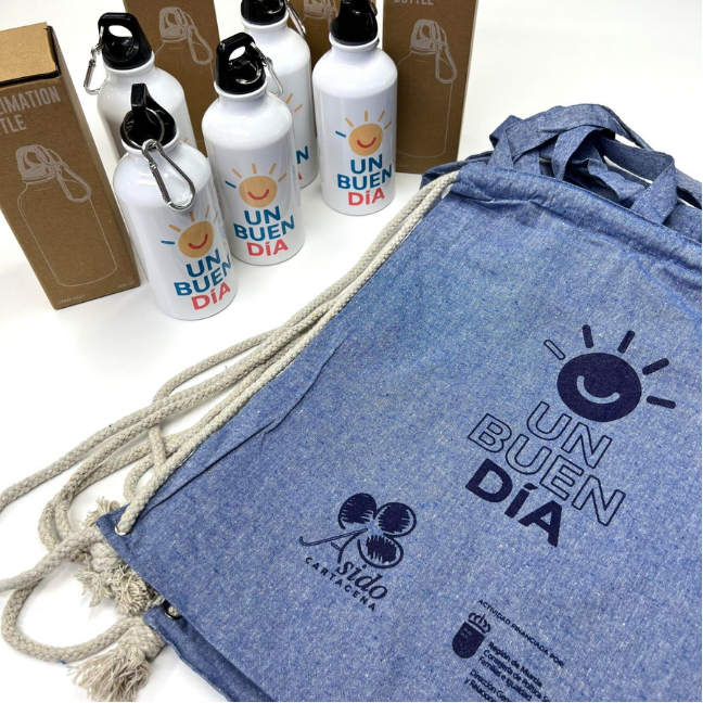 Mochilas de algodón reciclado y botellas de acero inoxidable personalizadas